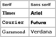 Times New Roman, Courier New, Garamond; Arial, Futura in