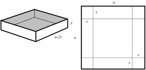 10. Iz dane kvadratne plošče z robom a izdelajte kvadrasto posodo, ki bo imela največjo