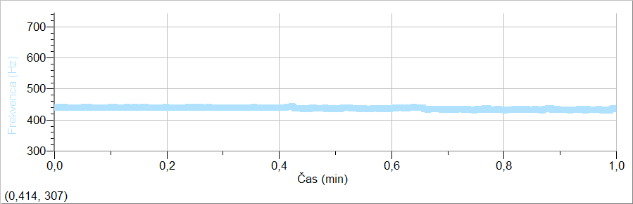 Na sredini CD vidimo to konstantnost, saj je graf v bistvu skoraj ravna črta. Seveda je takoj opazno, da je obhodni čas večji (0,0015s) in da sta frekvenca (650Hz) in in kotna hitrost (4100 1/s) manjši. Kar je povsem logično in se sklada z našimi teoretičnimi predpostavkami.