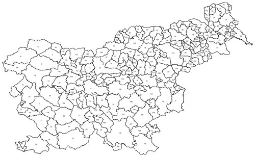 Municipalies; Municipal boundaries; Source: Statistic bureau of Republic Slovenia, Geodetic Administration of Republic Slovenia