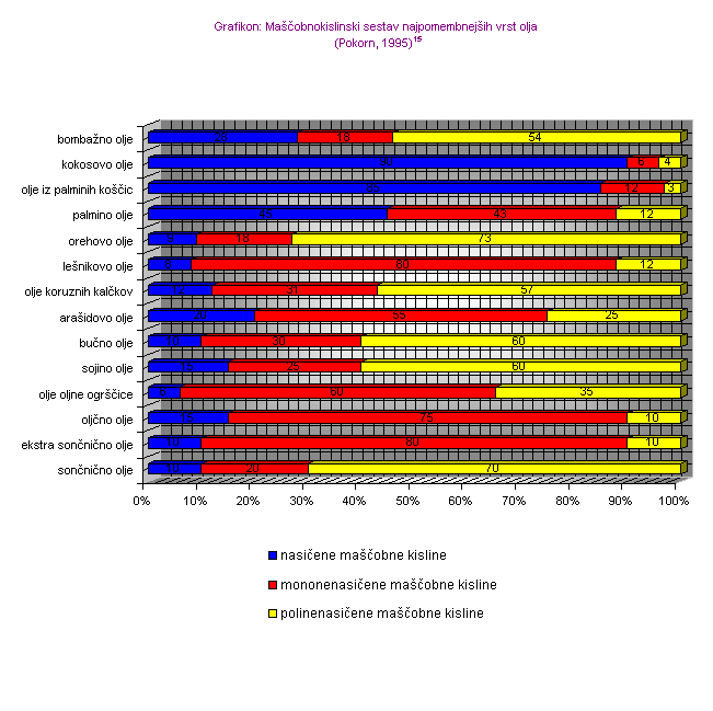 vsebujejo metilno (- CH3), hidroksilno (- OH) in druge skupine. Maščobnokislinski sestav posameznih vrst olja je