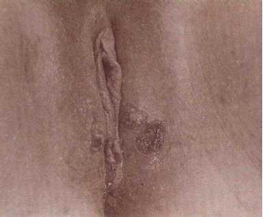t.i. "trdi čankar". Ta sprememba NI BOLEČA, najpogosteje se pojavlja na spolovilih, pa tudi ob zadnjiku, redko še v ustih,