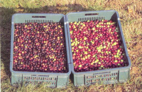 in manjšega sončnega obsevanja zelo upočasnjeno. Nedozoreli plodovi so intenzivno zelene barve. Z dozorevanjem dobivajo olive postopoma rdečkasto