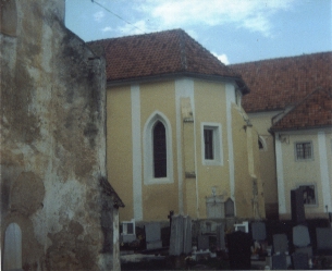 zahodni strani sta bila kasneje dozidana zvonik z baročno dozidano streho