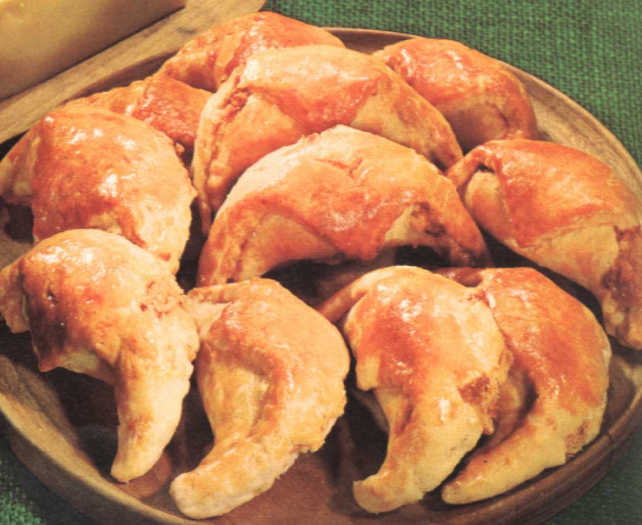 Mix the margarine and sugar, add an eggwhite and flour. Use a torn bag to create different shapes of dough. Cover the pieces with sugar and bake them.