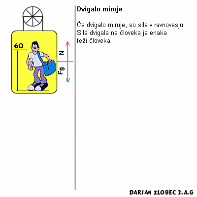 Ko dvigalo miruje, na človeka ne deluje nobena sila razen