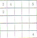 | 26. Pravokotni kos papira na sliki je skupaj s petimi vodoravnimi in napiènimi èrtami razdeljen na 12 delov. Èe bi hoteli pravokoten kos papirja razdeliti s skupaj n navpiènimi in vodoravnimi èrtami na 24 delov, potem n ne more biti: | ![]() |
