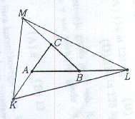 | 25. Vsako od stranic trikotnika ABC podaljamo za dolžino te stranice tako , da dobimo trikotnik KLM. Kakšna je plošèina trikotnika, èe vemo, da je plošèina trikotnika ABC enako 1? | |||||||||||||||||