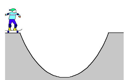 energijo-(Wk=0). Med vožnjo navzdol po klancu se mu potencialna