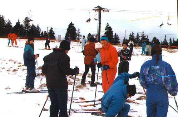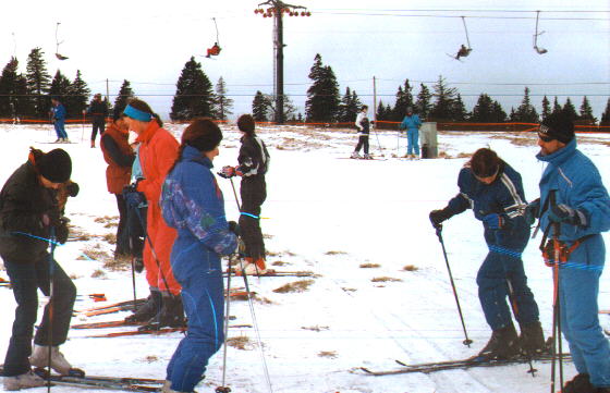 O smučanju samem bodo več povedale fotografije. Imeli smo 19 popolnih začetnikov smučanja, zatoso si Vlasta, Brane in Boris začetnike razdelili v skupine in z njimi trdo delali. Prva dva dneva sta bila huda, saj je bilo vreme vetrovno, sneg pa poledenel. Anpak začetniki so napredovali in napredovali...
