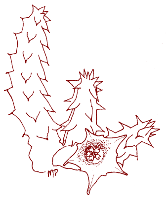 Tokrat v rubriki prvič predstavljam novosti, ki pripadajo “drugim” sukulentam. To so trije novi predstavniki stapelijevk (Asclepiadaceae) z juga arabskega polotoka in bližnjega arhipelaga Socotra, kjer je januarja 1990 zbral precej botaničnega materiala G. A. Miller iz Royal Botanical Garden iz Edinburgha. V apnenčastem hribovju Jabal Ma’lih je našel dve vrsti iz rodu Echidnopsis. Leto kasneje sta obe vrsti v zbirki zacveteli. Konzerviran material je poslal tudi Johnu Lavranusu, ki je obe vrsti tudi opisal. Septembra 1976 sta dr. Len Newton s kenijske univerze v Nairobiju in John Lavranos s Portugalske na terenskem delu na jugu arabskega polotoka zbrala veliko rastlin iz rodu Huernia. Med njimi je bila tudi do takrat neznana vrsta z ljubkimi rožnatimi cvetovi. Huernia rosea NEWTON & LAVRANOSRastlina ima obliko majhnega grmička s pokončnimi ali ležečimi petorobnimi zelenimi stebli z izrazitimi “zobmi”. Cvetovi izraščajo v spodnjem delu stebel v skupinah po tri, odpirajo se pa zaporedno. Pecelj je rožnate barve, dolg 7 mm. Cvetna čaša je pet-krpa. Čašni listi so ozki, šilasti in rožnato obarvani. Cvetni venec ali korola (corolla) je zvončaste oblike s premerom do 30 mm. Cvetna cev je mesnata, dolga in široka 10 mm. Venčni listi (krpe korole1) so trikotne, razprte, dolge do 10 mm. V bazi so široke, končajo se pa zelo ostro. Vmesne krpice so zelo kratke. Korola je rožnate barve, notranja površina je pokrita s svetlimi bradavicami (papilami).