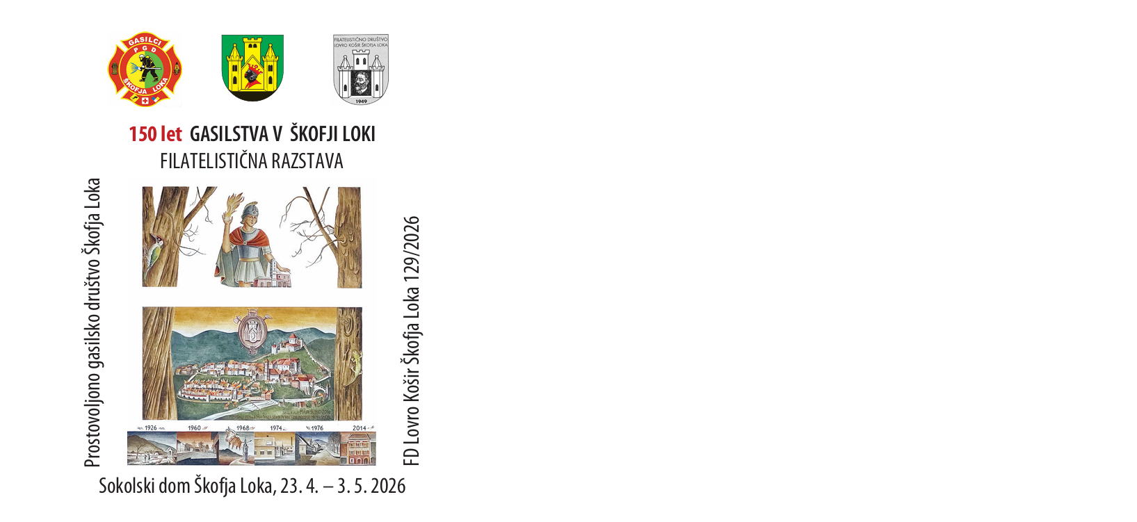 Razstava ob 150-letnici PGD Škofja Loka bo postavljena od 23. aprila. do 4. maja 2026 v Sokolskem domu Škofja Loka.