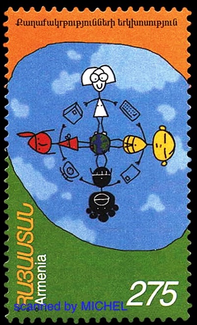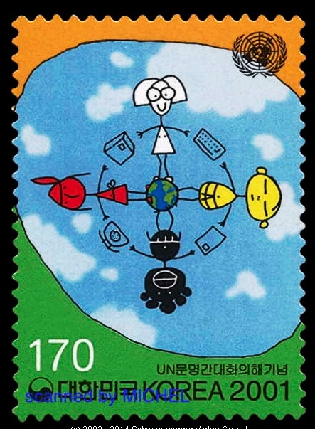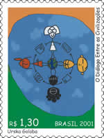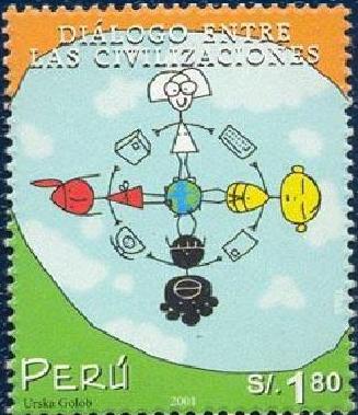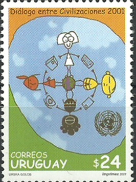 Leto 2001 so Združeni narodi proglasili za mednarodno leto komunikacij med civilizacijami. Ob tej priložnosti, je poštna uprava Irana predlagala svetovni poštni zvezi, bi članice izdale enotno znamko, ki bi počastila to leto. Na razpis za oblikovanje znamke je prišlo veliko predlogov. Posebna komisija (predstavnik iranske pošte, predstavnik svetovne poštne zveze, predstavnik svetovne filatelistične zveze...) je izbrala 4 predloge. Med predlogi je bil tudi predlog slovenske oblikovalke Urške Golob. Na kongresu svetovne poštne zveze so med temi 4 predlogi izbrali prav njen predlog. Enaka znamka je izšla v preko 50 državah članicah svetovne poštne zveze.