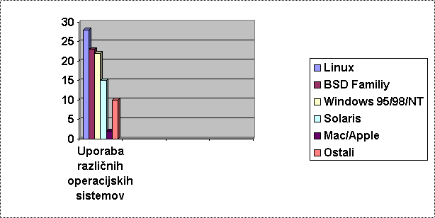 Slika 4 : Uporaba različnih operacijskih sistemov na Internetu po Evropskih strežnikih ( v procentih % )