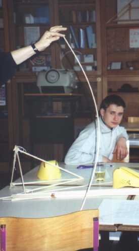 Matic in Boštjan sta naredila konzolno konstrukcijo, težko 31g. Prenesla je obtežbo z maso 2kg, kot je bilo predpisano. Nato smo nadaljevali z obremenjevanjem. Porušila se je pri masi 9kg. Zdržala je svojo 290x-no težo. Bravo!