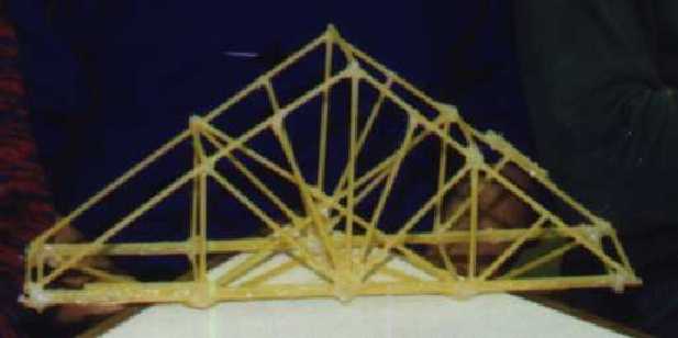 Naslov aktivnosti: Izdelava modelov konstrukcij iz špagetov Datum: 7. - 8. april 2001 Ura (od -do):10.00 - 16.00 Nekaj primerov konstrukcij narejenih iz špagetov. SLIKA 1 SLIKA 2 SLIKA 3 Prijava: Majda Pregl Nazaj na program Nazaj na glavno stran
