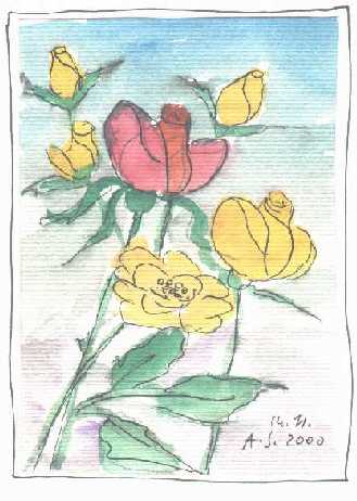 Število ostalih udeležencev:Datum: Ura (od -do): Povzetek vsebine: Na mizi smo imeli šopek vrtnic. Nekateri so začeli z slikanjem mavričnih kompozicij, bolj vešči pa so vadili vrtnice po naravi. Za zaključek si je vsak izmislil svobodno kompozicijo. Uporabili smo risalne liste različnih formatov in akvarelne barve. Nekateri so prej skicirali s svinčnikom, nekateri pa so slikali takoj z čopičem.