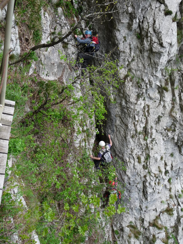 lahko brez pomislekov zaupali. Približno na sredini plezalnega dela poti se