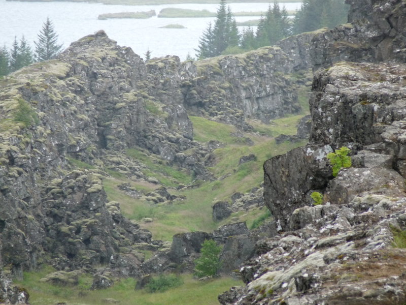 Levo Evropa - desno Amerika; kontinentalna prelomnica pri Thingvellirju |