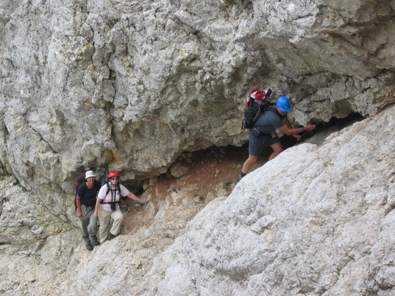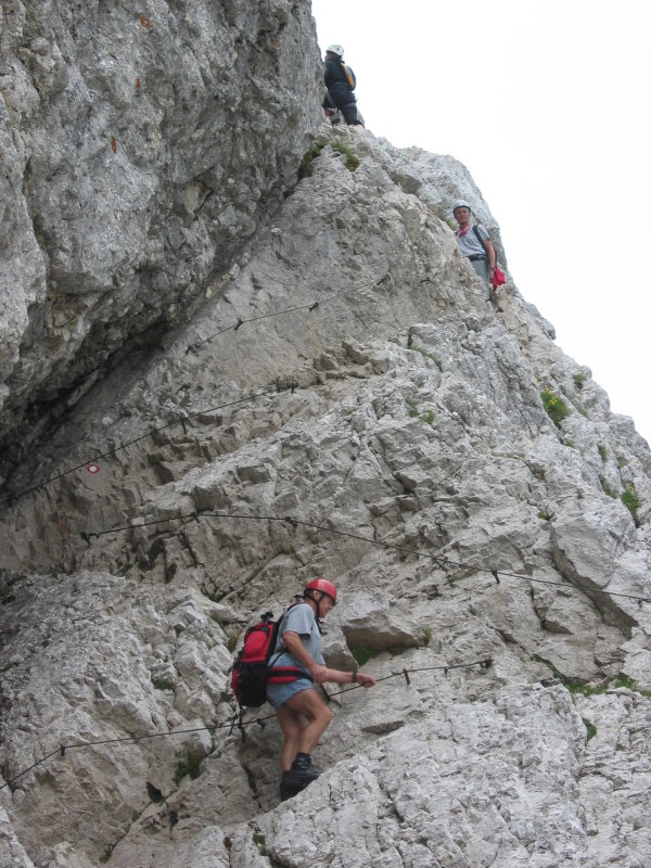 pod steno, kjer se je naša pot obrnila strmo navzgor. Jeklene vrvi in klini, ki