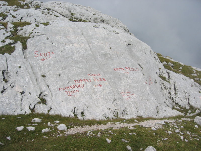 ne moreš zgrešiti, težave pa se pojavijo v višini bivaka pod Skuto, kjer se pot