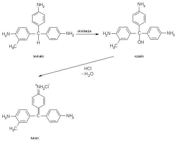 Levko oblike trifenilmetanskih barvil so amino ali hidroksi derivati trifenilmetana. Z oksidacijo dobimo iz teh oblik brezbarvne baze( pri aminokislinah) ali kisline(pri hidroksilnih spojinah), iz teh pa nastanejo barvila, ko s kislinami tvorijo soli.