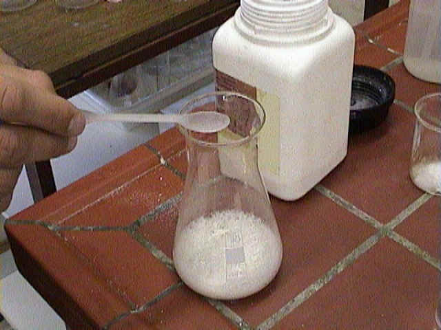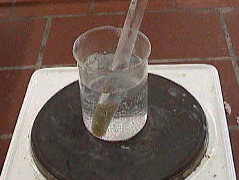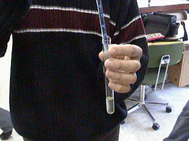 Nato smo dodali 20 ml vode, pomešali in dodajali toliko časa natrijev karbonat, da se ni več penilo, filtrirali, prelili ca 2 ml filtrata v epruveto.