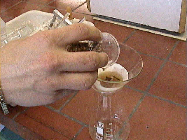 Zatehtali smo 0,5 g pšenične slame(žagovine, vate) v čašo, dodali 5 ml konc HCl, pokrili z urnim steklom in pustili nekaj dni.