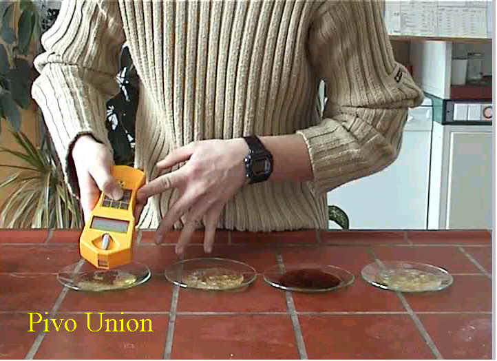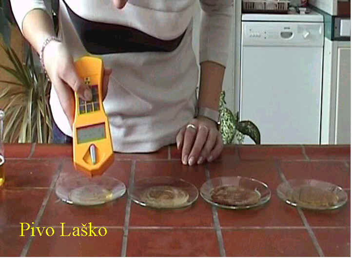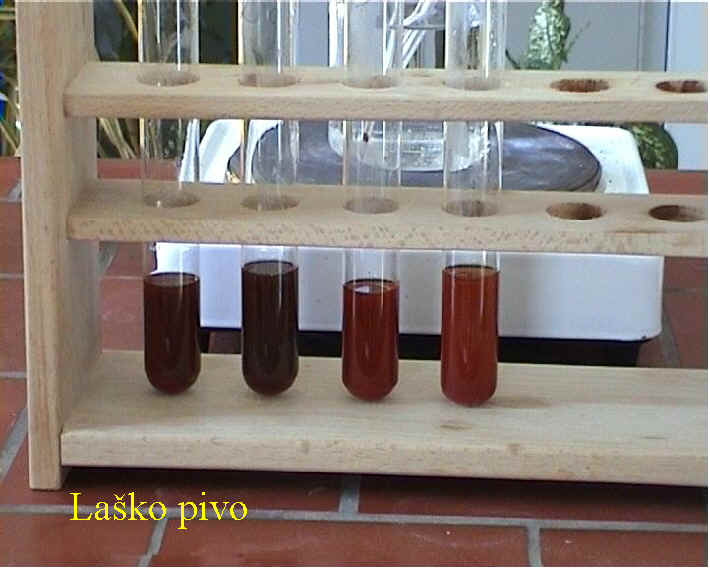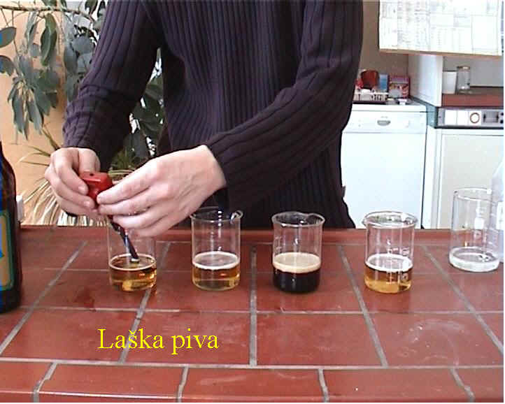 Ob tem smo primerjali po štiri različna piva ene in druge pivovarne glede pH, dokaza s Fehlingom, naravne radioaktivnosti, elektronapetosti, penjenja. Nekaj piv pa smo tudi zamrznili in opazovali pod polarizacijskim mikroskopom.