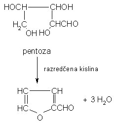 Furfural dokažemo z zmesjo piridina in ocetne kisline