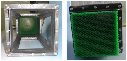 Chamber with screwed flanges and segments for air spoiler deflector. Individual segments of the wind tunnel can exchange between themselves joined together by screw connections. This possibility allow us to testing the device itself and any changes.