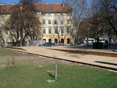 | V jeseni 2010 so pričeli obnavljati ne tako davno zgrajen vhod v Pravo fakulteto (bivša tiskarna) |