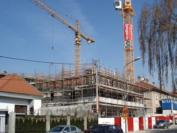 | Na mestu dveh starih hiš ob Hradetskega cesti so v letu 2008 začeli graditi Hospic. |