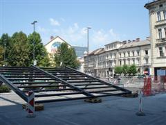 | Ploščad okoli Maksimarketa so v letu 2007 temeljito obnovili. |