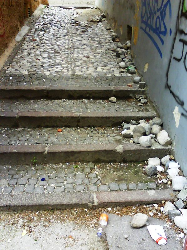 | Steza med hišama na Poljanski 9 in 11 je hudo potrebna popravila. Poleti 2009 tlakovano. |