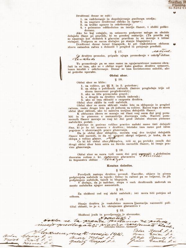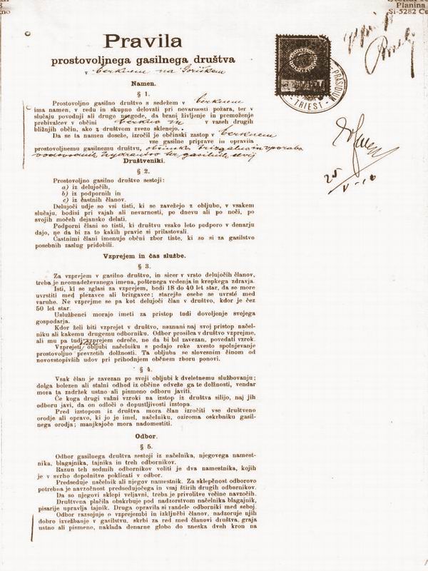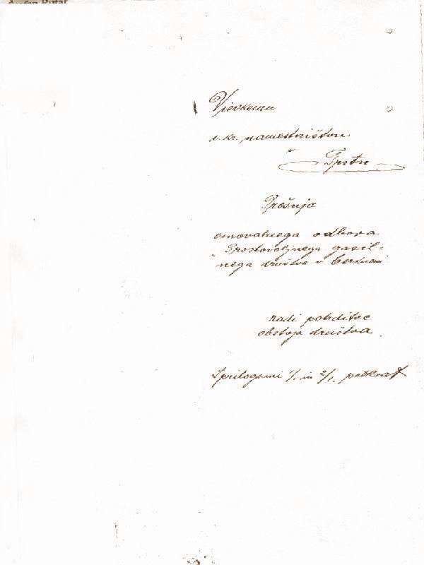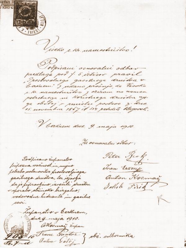 Prošnja za ustanovitev Prostovoljnega gasilskega društva v Cerknem