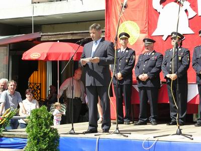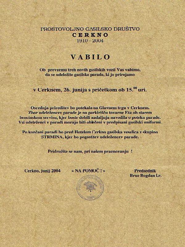 Znak Prostovoljnega gasilskega društva v Cerknem in vabilo