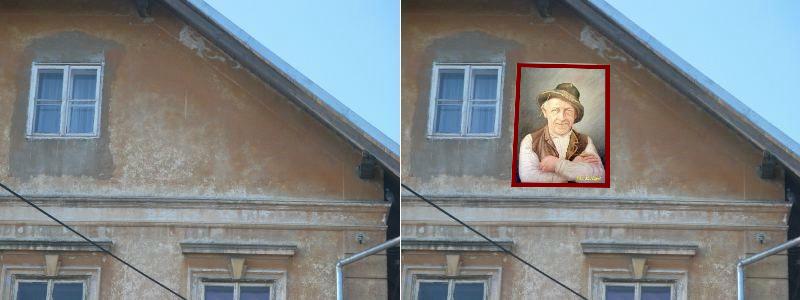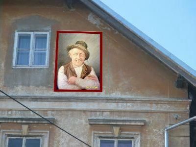 Na Hainriharjej hiš (Kidričeva 68), na Trát u Škuofiluok na želíznščmu štaciuonu, je bi Palančeu Žuán tut namálan kot ana freska u zatríepu patstríšje. Na tále srejčejna h Urbančku nisa po'ršl sam Crkláni z Jebláne. Po'ršl sa tut s cíle Krajnske, pa tut ldi s Cíerkna je blu kár níki. Tel sa se damou papelál z želíznca da luoščga štaciuona, tam jih je pa Palančeu Žuán še na uláku s hiše dal pazrauleu n zaželu srejčna puot damou. Na uí se, kadu p tega Žuána takat na taku zla uesač hiš narisau. Po'rtoknena slika po'rkazuje (z 99,9% guišnastje), kuot je ta slika bla namálana. Hiša je bla pa uojsk nacionalizíerana, umís je bla fasáda na frišnu prešpricana n slika je šla u malóra. Danc se skúz uad dožje uabnucan špric še má uidje uon rjáj uakuíeri ajnkatne slike. Po'r pazueduajnu se malaríe ldíe tam uakul na spouneje ueč. Zašlišanih je blu pa kajt stárih Crklánau uon s Cíerkna, ka se tega še zmislje. Če p kodi ceplnu Crklánam uatkuot ki dnára, na bi blu slabú, de se na hiša tista slika druč rukne, ka se uí, kešna gar more bit.