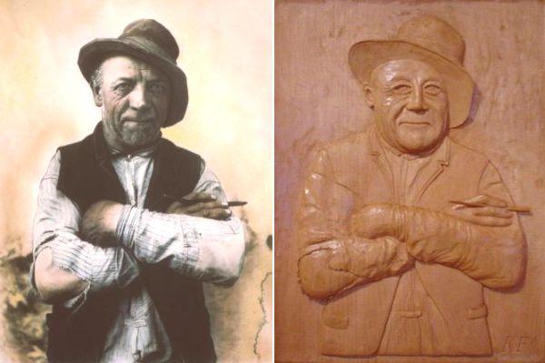 Kešnga prou pasebnga pisajne uat teh srejčajnih blezu ni, se pa na dá uaparečt, de sta bla to le ta glauna Fíerbarjeu Ceril (Ciril Petrenelj) mpa Guštinau Píeto'r (Peter Brelih), uabá zagríta jeblajnska Crklána. Ta prej je bi prafesor na jeblajnščmu liceju, ta druj pa j služu po'r penzjonistajsk blagajn. Fíerbarjejmu Cerilu je šou tut penzl dabru uad ruok, četut tega meštíerje ni bi. Nega díla (n še n kop drujih) je Palančeu Žuán (Ivan Razpet?), pat kíerga slika sa se tam žuíeč Crkláni zbíeral. U nemu sa ldíe uidl skari use, kar b uandruj takat n še danc nucal, de sa da luoži prežuít.