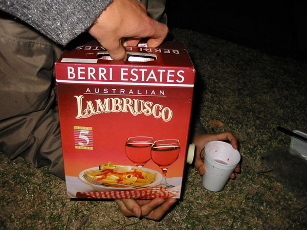 in Lambrusco. Tu v Avstraliji pakirajo v karton tudi boljše vino. Spet