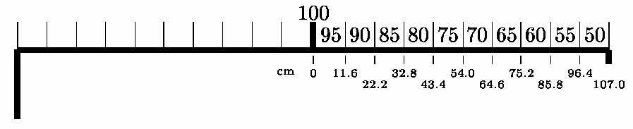 sredina - 5 mm široka in 40 cm dolga črta, pravokotno na štartno črto izven poligona.