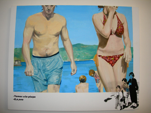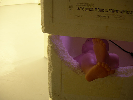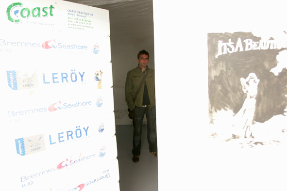 oil on canvas, ink on paper, fish boxes,