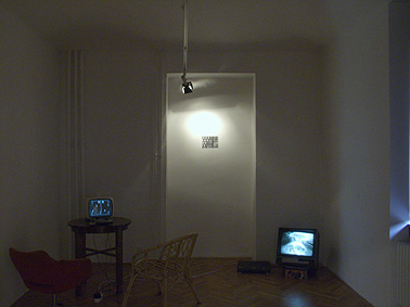 Privat(e) Gallery P74, Ljubljana April 2003 View 3 - The second, smaller space. One black and white video with almost no sound Privat(e) one ready-made video game and b/w photo.