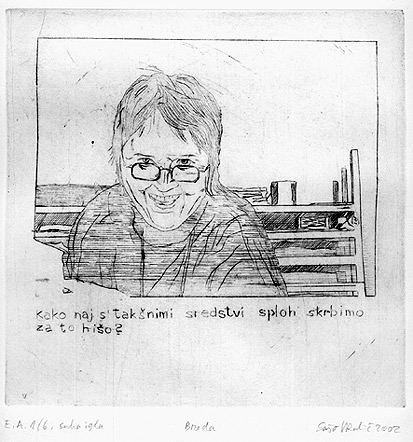 Breda (kustosinja) je bila kuratorka 24. grafičnega bienala v Ljubljani. Drugače pa skozi hodi po svetu in je velika poznavalka svetovne grafike. Nerada se fotografira, samo zgleda, da se kdaj pa kdaj le pusti presenetiti. oglej