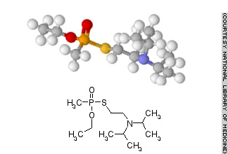 0,3 mg-kar je petina dežne kapljice. Plin VX vpliva na živčni sistem