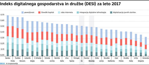 Po indeksu digitalnega gospodarstva (DESI) se Slovenija uvršča med srednje uspešne države v Evropi.