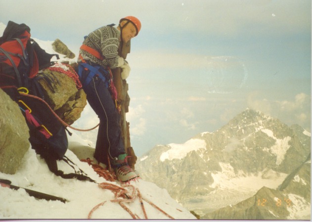 Od Hornlihutte do vrha te loči 1200 višinskih metrov. 1200 metrov plezarije II., tudi III. stopnje, pa tudi kakšen skok spodnje četrte stopnje te čaka. Na 4003 m stoji bivak Solvayhutte - za primeren resnih težav. Tako kot vsi, sva z Romanom vzpon začela še sredi noči. Ker v noči zelo lahko zaideš v še težji svet, sva imela namen slediti kašni navezi vodnik-klient. Na ozkem zavarovanem vstopu v steno pa so nama namero preprečili Japonci, kakih 15 jih je bilo na enem štriku. Prehitevala sva jih celo noč, prehitela pa šele ob svitu. Pred vršnim snežiščem sva se lotila gladkih plošč s pomočjo fiksnih vrvi in prilezla na vrh po šestih urah in pol.