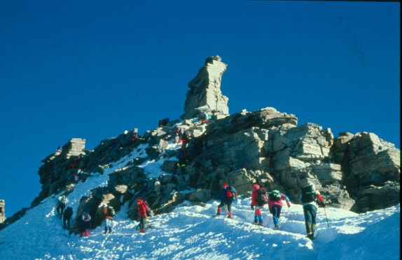 nami. Po kakih štirih urah hoje smo pod vrhom, ki pa ni zasnežen. Vzpon na vrh