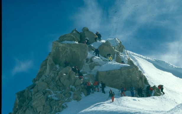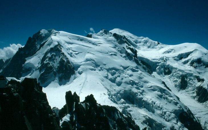 napadom na Mont Blanc (na fotki zadaj desno, Tacul skrajno levo). Gondola te iz Chamonixa dvigne na 3842 m visoki Aiguille