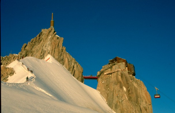 Aigulle-a treba sestopiti na ledenik Col du Midi (3500 m), odkoder te do